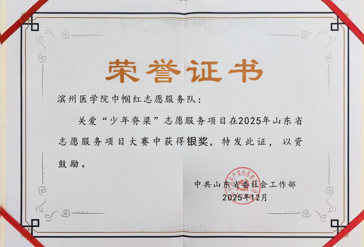 近日,滨州医学院巾帼红志愿服务队发起的关爱“少年脊梁”志愿服务项目迎来高光时刻:在滨州举行的山东省巾帼志愿服务项目大赛颁奖典礼上,该项目荣获一等奖;在临沂举行的山东省志愿服务项目大赛颁奖现场,该项目再获省赛银奖第一名,项目在全省两大权威评选中双双斩获重要奖项,彰显其扎实的服务成效与广泛的社会认可。
