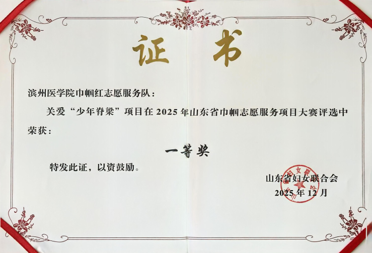 近日,滨州医学院巾帼红志愿服务队发起的关爱“少年脊梁”志愿服务项目迎来高光时刻:在滨州举行的山东省巾帼志愿服务项目大赛颁奖典礼上,该项目荣获一等奖;在临沂举行的山东省志愿服务项目大赛颁奖现场,该项目再获省赛银奖第一名,项目在全省两大权威评选中双双斩获重要奖项,彰显其扎实的服务成效与广泛的社会认可。